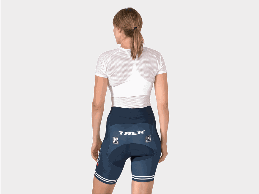 Bermuda feminina leve com design exclusivo da equipe Trek-Segafredo. Pareça um profissional, pedale como um profissional. Exiba com bom gosto seu amor pela equipe Trek-Segafredo sem sacrificar o desempenho.
