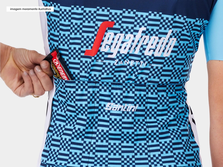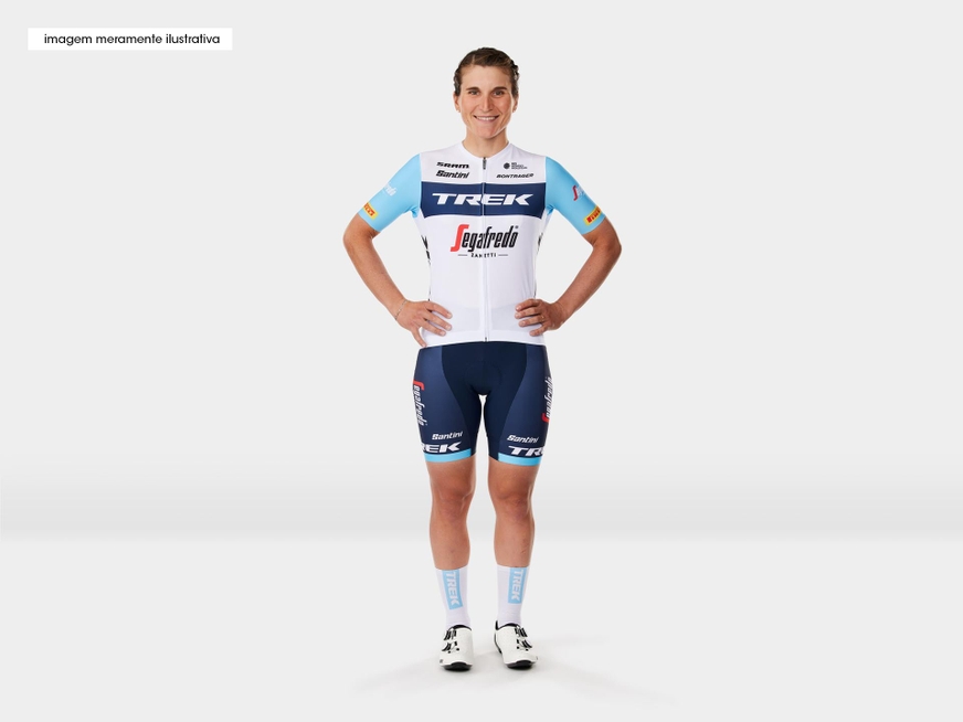 Uma réplica da camiseta feminina de ciclismo de manga curta leve com design exclusivo da equipe Trek-Segafredo. Pareça profissional, pedale como profissional. Demonstre com bom gosto seu amor pela equipe Trek-Segafredo enquanto desfruta do desempenho profissional do pelotão em um corte justo. Fabricada com tecido de poliéster de microfibra, esta camiseta de ciclismo extrarrespirável é ideal para seus pedais mais difíceis nos dias mais quentes. O uniforme oficial do time, fabricado pela Santini, com o logotipo da Equipe Trek-Segafredo orgulhosamente estampado. Os produtos da Santini são desenvolvidos ao longo de anos de paixão, testes, inovação e experiência nas corridas mais difíceis do mundo.