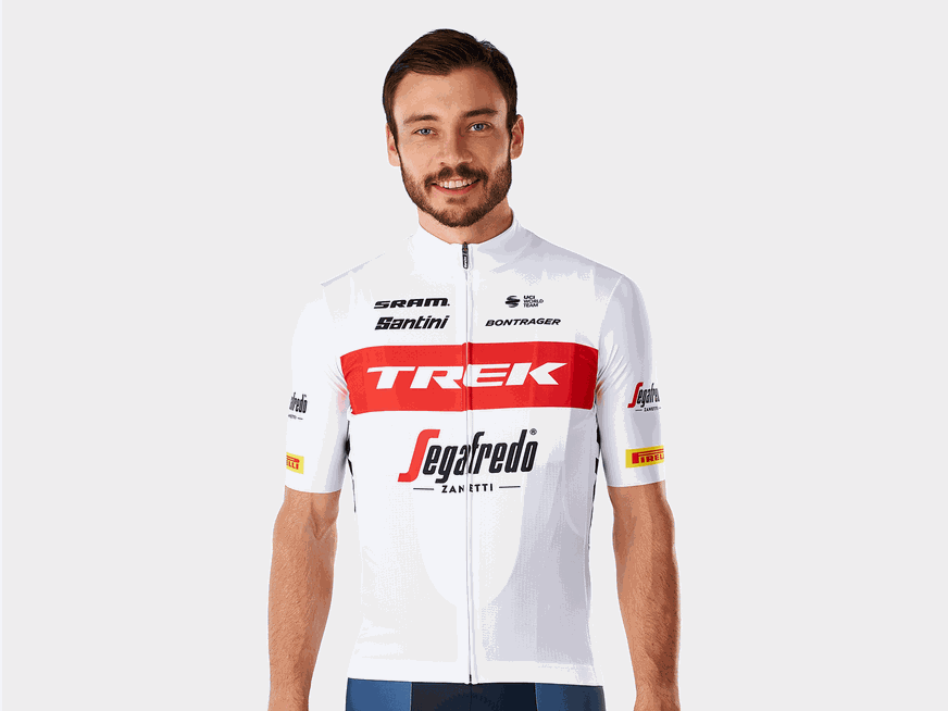 Feito por Santini. Corra com orgulho com as cores oficiais de corrida da equipe Trek-Segafredo. Materiais de poliéster de microfibra na frente e nas costas absorvem a umidade e secam rapidamente. Painéis laterais de malha de comprimento total oferecem propriedades superiores de absorção de umidade para secagem mais rápida. Mangas alongadas e cortadas cruas proporcionam maior desempenho aerodinâmico e conforto aprimorado. O zíper completo proporciona ventilação em subidas longas e dias quentes Três bolsos traseiros abertos estão prontos para armazenar todos os seus itens essenciais para a viagem. O corte ajustado proporciona um ajuste aerodinâmico para melhor desempenho.