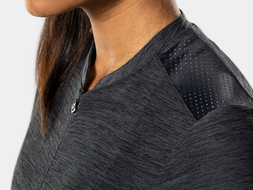 Uma camisa de ciclismo feminina elegante, projetada para desempenho na bicicleta e no estúdio de ciclismo indoor. A camiseta de ciclismo feminina Vella é uma blusa confortável e voltada para o desempenho com tecidos macios, extratores de umidade, design elegante e recursos úteis como três bolsos traseiros para guardar seus itens essenciais. Esta blusa respirável combina função e moda em um único pacote leve.
