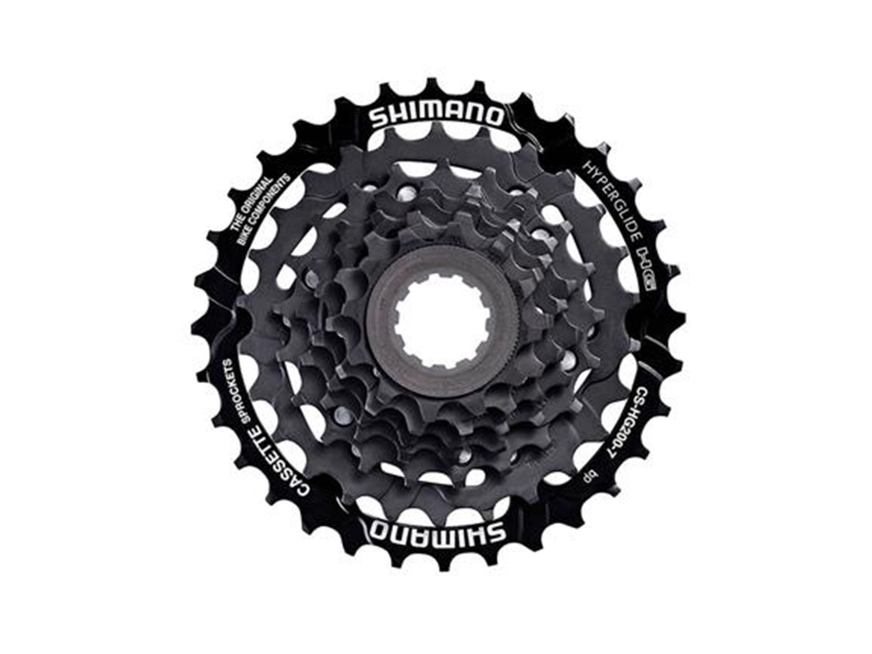 Ideal para transmissões de MTB de 7 velocidades, o cassete HG200-7 oferece a tecnologia de troca de marcha Hyperglide e um acabamento fino.