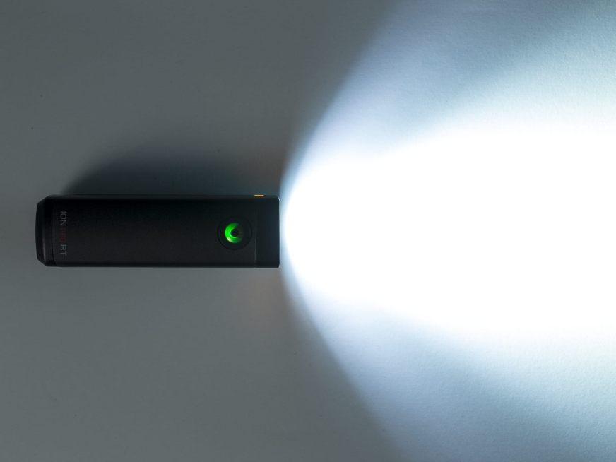 Uma farol recarregável por USB com cinco modos para o dia e para a noite e energia suficiente para iluminar toda a largura de qualquer trilha. O farol para bicicletas Ion Pro RT permite pedalar com confiança em todas as horas do dia. O farol recarregável por USB possui 5 modos para dia e noite, e seu design compacto e suporte para montagem no guidão ajustável facilitam a fixação segura ao guidão de qualquer bicicleta.