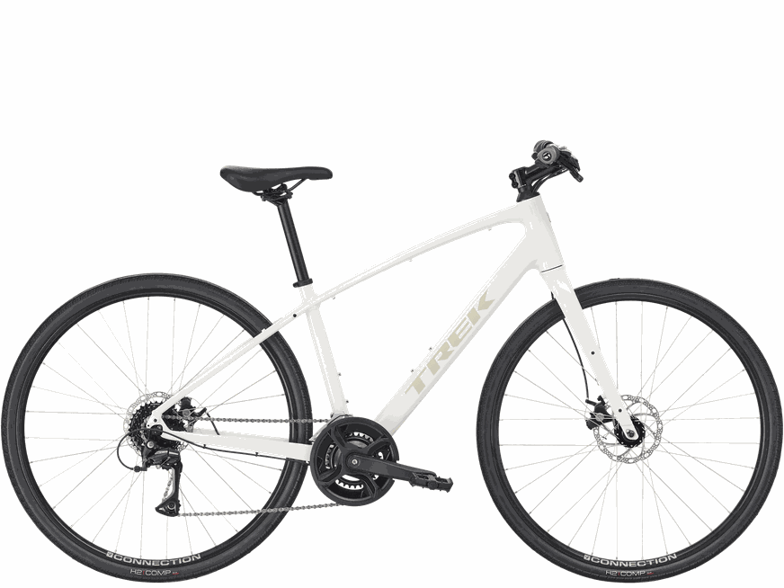*Favor observar - as especificações se aplicam a todos os tamanhos, a menos que estejam listados separadamente Conjunto de quadro Especificações *Frame Tamanho: P, G, M Alumínio Alpha Gold, roteamento de cabos interno, pontos de fixação para bagageiros e para-lamas, freio a disco montado em pilar, ponto de fixação para descanso, blocagem rápida 135 x 5 mm *Fork Tamanho: P, G, M FX steel, flat-mount disc, rack mounts, 410mm axle-to-crown, ThruSkew 5mm QR Rodas Especificações *Front Hub Tamanho: P, G, M Formula DC-20, liga, 6 parafusos, Blocagem Rápida 5x100mm *Front Skewer Tamanho: P, G, M Aparafusado 139x5mm *Rear Hub Tamanho: P, G, M Fórmula DC-22, liga, 6 parafusos, Cubo livre Shimano de 8/9/10 velocidades, Blocagem Rápida 135x5mm *Rear Skewer Tamanho: P, G, M Eixo de blocagem rápida 152x5mm *Tire Tamanho: P, G, M Bontrager H2 Comp, talão de aramida, 30 tpi, 700 x 35mm Transmissão Especificações *Shifter Tamanho: P, G, M Shimano EF500, 2 velocidades Tamanho: P, G, M Shimano EF500, 8 velocidades *Front Derailleur Tamanho: P, G, M Shimano Tourney TY606, abraçadeira 31,8/34,9 mm, abraçadeira baixa, tração dupla *Rear Derailleur Tamanho: P, G, M Shimano Acera M3020-8, catraca máxima 40D *Crank Tamanho: P, G, M Liga forjada, 46/30, 170mm de comprimento *Bottom Bracket Tamanho: P, G, M Cartucho selado, 68 mm *Cassette Tamanho: P, G, M Shimano 8 Velocidades, 12-32D *Chain Tamanho: P, G, M KMC Z8.3 *Pedal Tamanho: P, G, M Pedal de nylon Wellgo Componentes Especificações *Saddle Tamanho: P, G, M Sport Bontrager *Seatpost Tamanho: P, M Liga Bontrager, 27,2 mm, deslocamento 12 mm, comprimento 330 mm Tamanho: G Bontrager em liga, 27,2 mm, deslocamento de 12 mm, comprimento de 400mm *Handlebar Tamanho: P, G, M Bontrager Riser, aço, 25,4mm, elevação 30mm, largura 600mm *Grips Tamanho: P, G, M Trek Line Ergonomic Comp, com trava *Stem Tamanho: P, M Liga Bontrager, abraçadeira 25,4mm,10 graus, comprimento 90 mm Tamanho: G Liga Bontrager, abraçadeira 25,4mm,10 graus, comprimento 110 mm *Brake Tamanho: P, G, M Freio a disco mecânico Tektro MD-U310 *Brake Rotor Tamanho: P, G, M Tektro wave, 6 parafusos, 160 mm Peso Especificações Peso M - 13.00 kg / 28.67 lbs Limite de peso Esta bicicleta possui um limite de peso máximo (peso combinado de bicicleta, ciclista e carga) de 136 kg (300 libras).