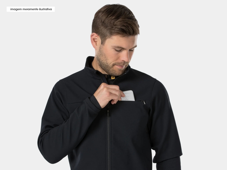 O tecido Softshell combina calor e proteção para conforto durante todo o dia. O tecido térmico nas axilas e punhos acrescenta respirabilidade e calor. Três bolsos de armazenamento abertos para camadas extras e itens essenciais para o ciclismo. Um bolso com zíper no peito para itens essenciais de fácil acesso. O cordão altera o ajuste imediatamente e retém o calor do corpo quando a temperatura cai. O laço de travamento permite pendurar e secar a roupa facilmente, de modo que você sempre está pronto para o próximo trajeto. A modelagem semiajustada acompanha as curvas do seu corpo, com folga para movimentação e camadas adicionais.