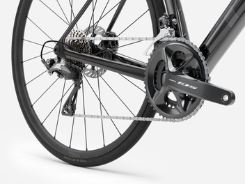 A Madone SL 5 8ª Geração é uma bicicleta de estrada aerodinâmica e ultraleve, e que traz a tecnologia de corridas de elite para uma faixa de preço mais acessível. Ela oferece benefícios aerodinâmicos semelhantes aos modelos Madone SLR 8ª Geração, com uma construção mais econômica em OCLV Carbon 500 e um cockpit de duas peças com roteamento de cabos oculto. O conjunto de componentes Shimano 105, o guidão e as rodas de alumínio mantêm o custo acessível, sem abrir mão de trocas de marcha mecânicas precisas e confiáveis.