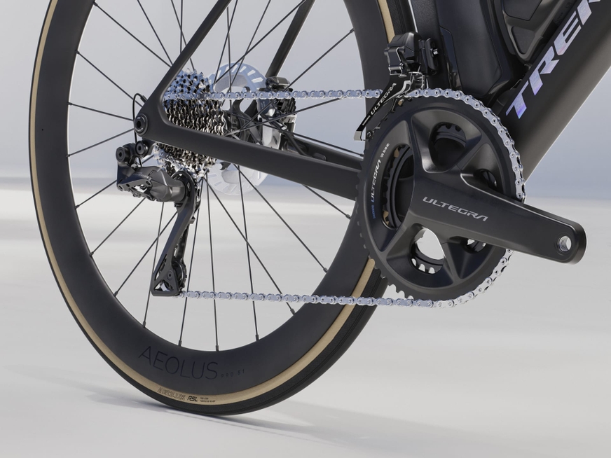 Deslocador Shimano Ultegra R8170 Di2, 12 velocidades Câmbio dianteiro Shimano Ultegra R8150 Di2, brasagem, balanço para baixo Câmbio traseiro Shimano Ultegra R8150 Di2, engrenagem máxima 34T *Manivela Tamanho: XS, S Shimano Ultegra R8100, 52/36, comprimento de 165 mm Tamanho: M Shimano Ultegra R8100, 52/36, comprimento 170 mm Tamanho: ML, L Shimano Ultegra R8100, 52/36, comprimento de 172,5 mm Tamanho: XL Shimano Ultegra R8100, 52/36, comprimento de 175 mm Suporte inferior Praxis, rosca T47, rolamento interno Cassete Shimano Ultegra R8101, 11-30, 12 velocidades Corrente Shimano Ultegra/XT M8100, 12 velocidades Tamanho máximo da coroa 1x: 54T, 2x: 56/43