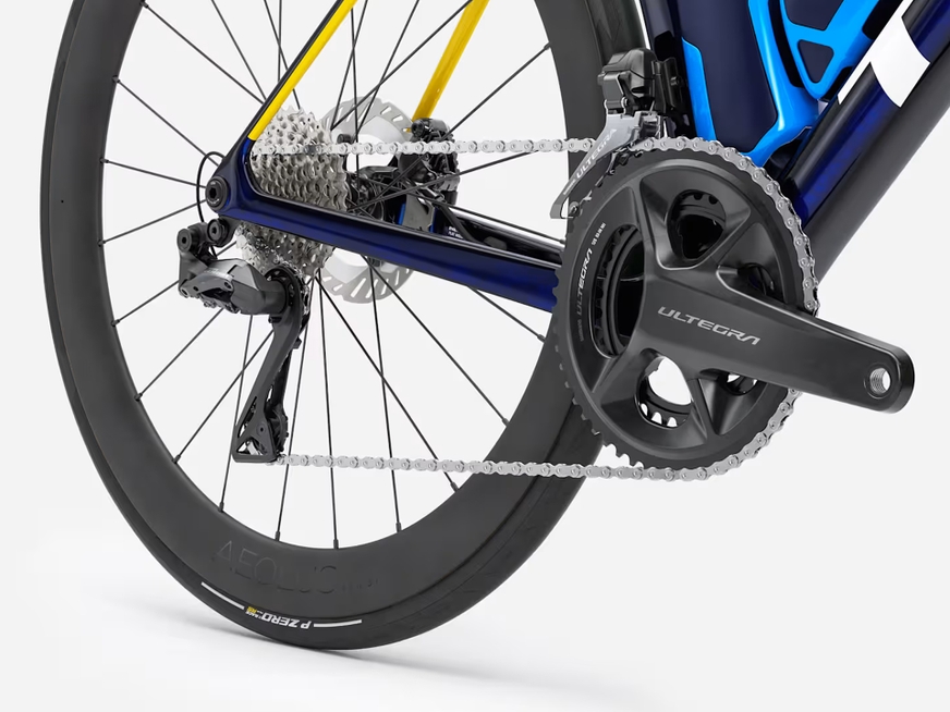 A Madone SLR 7 8ª Geração é uma bicicleta de estrada leve e aerodinâmica, própria para corridas. Seu quadro em carbono OCLV Carbon Série 900 faz o peso ficar superbaixo e os ganhos aerodinâmicos serem maiores, enquanto a tecnologia IsoFlow permite que você corra mais rápido sem perder o conforto. Ela vem pronta para as corridas, equipada com um conjunto de componentes sem fio Shimano Ultegra Di2 2x12, rodas de carbono Bontrager Aeolus Pro 51, um guidão/avanço integrado Trek Aero RSL (peça única em carbono), e Caramanholas e Suportes RSL Aero, que reduzem ainda mais o arrasto aerodinâmico.