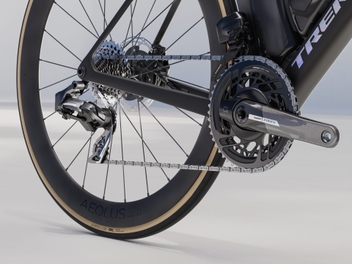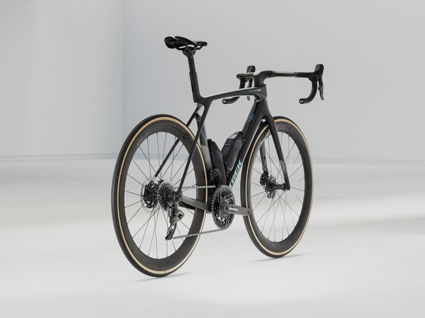 A Madone SLR 7 AXS Gen 8 é uma bicicleta de estrada ultra-aerodinâmica e leve como uma pena, construída para corridas. Seu quadro de carbono OCLV da série 900 não é apenas aerodinâmico, mas também ultraleve para voar em subidas. A tecnologia de quadro leve IsoFlow significa que a Madone não sacrifica o conforto pela velocidade. Para lhe dar todas as vantagens aerodinâmicas, a Madone SLR vem com RSL Aero Bottles e Cages que reduzem ainda mais o arrasto. Esta construção vem pronta para vencer com uma transmissão SRAM Force AXS D2 com um medidor de potência, rodas de carbono e um guidão/mesa de carbono Trek Aero RSL de uma peça.