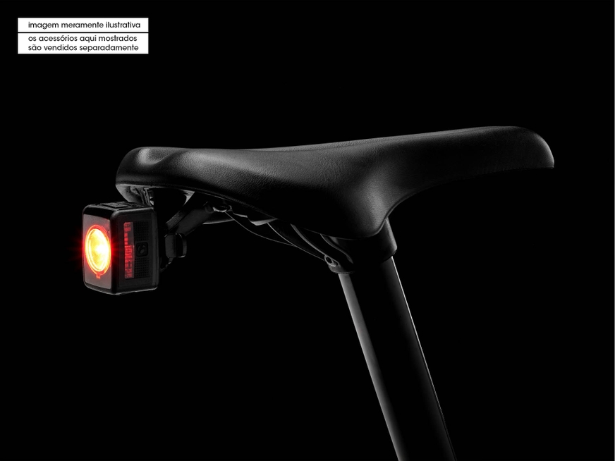 É possível substituir a alça integrada ao selim por um suporte de lanterna integrado para aumentar a visibilidade em aventuras em família e excursões individuais.