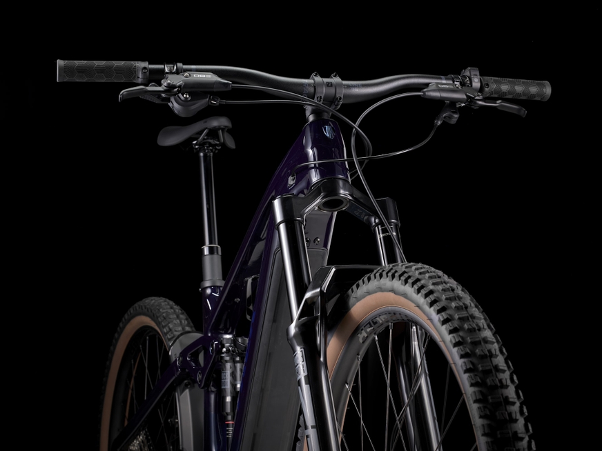 Um quadro OCLV Mountain Carbon com sistema Bosch Performance CX (85Nm, 250W) e uma enorme bateria integrada removível RIB 2.0 de 800Wh. Um garfo RockShox ZEB Select com 160mm de curso, mola DebonAir, amortecedor Charger RC, combinada com amortecedor traseiro RockShox Super Deluxe Select+ RT. Rodas Bontrager Line Comp 30 Tubeless Ready, uma transmissão mista Shimano XT e SLX, freios hidráulicos a disco SRAM de 4 pistões e um canote retrátil com roteamento interno.