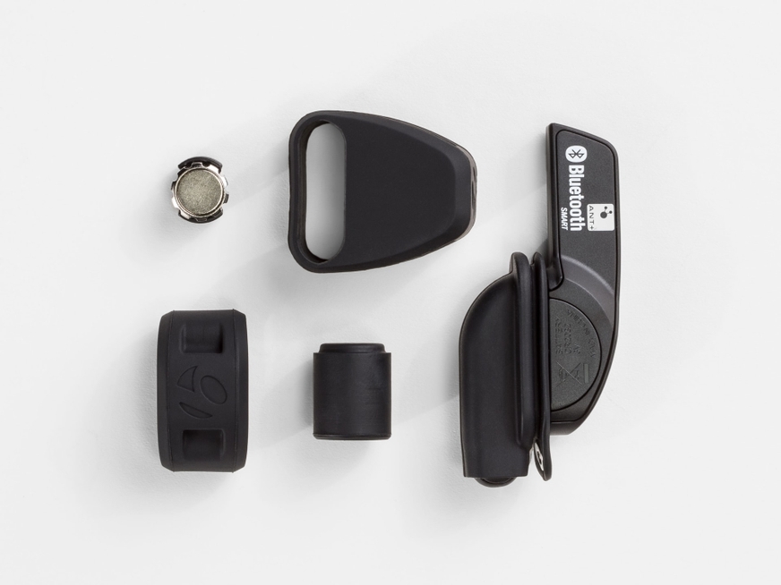 Sensor digital de velocidade e cadência sem fio Bluetooth® Smart e ANT+ de 2,4 GHz. As tecnologias sem fio ANT+ e Bluetooth® Smart permitem o uso simultâneo do Trip 300 e de smartfones. Para uso com muitos dispositivos compatíveis com as tecnologias sem fio ANT+ e Bluetooth® Smart". Inclui faixa de cadência de pedivela, ímã de roda Bontrager e bateria CR2032.