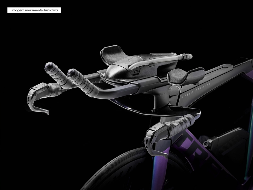 A Speed Concept SLR 7 AXS é uma bicicleta para triathlon de carbono aerodinâmica projetada para incrível velocidade e perfeita integração. Cada componente desta bicicleta — o quadro leve e aerodinâmico, o amortecimento de vibrações IsoSpeed e os armazenamentos para hidratação e alimentos de última geração, além do sistema de transmissão eletrônica sem fio SRAM Force AXS D2 — foi meticulosamente projetado para você superar seus próprios recordes várias vezes seguidas.