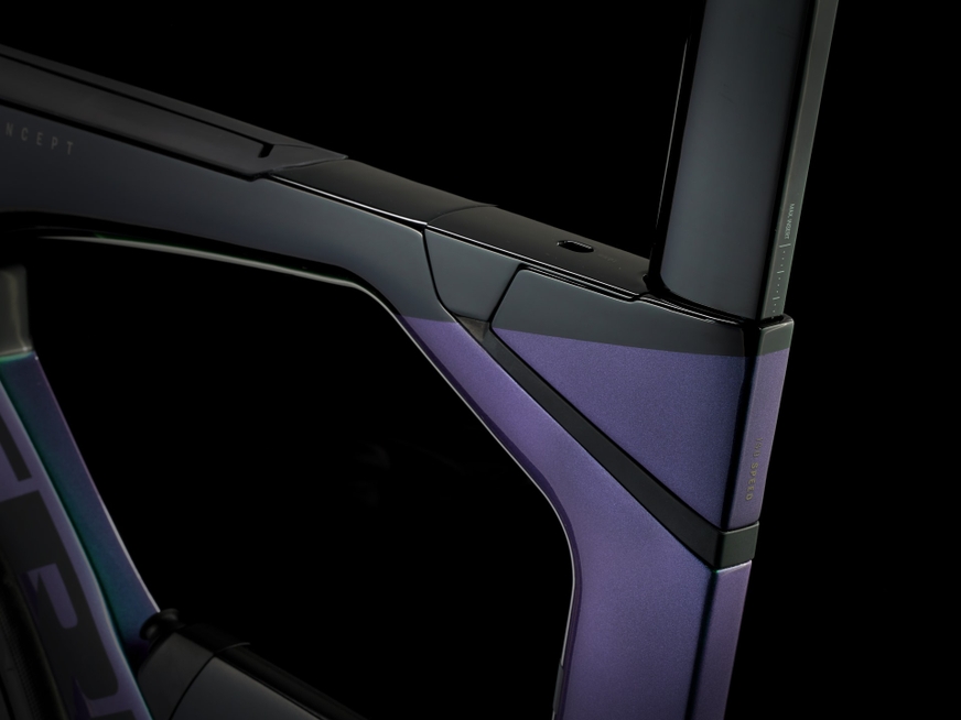 Ela possui quadro de carbono ultraleve OCLV Carbon Série 800, tubo com formato redutor de arrasto Kammtail Virtual Foil (KVF), garfo Speed Concept tipo aerofólio totalmente em carbono, amortecedor de vibrações IsoSpeed e compartimentos integrados para armazenar barras de cereais, hidratação e kits de reparos de pneus. Conta com sistema de transmissão eletrônica sem fio SRAM Force AXS D2 de 12 velocidades com alavancas de câmbio SRAM AXS Clics, um medidor de potência Force AXS e guidão e avanço totalmente integrados. Seu selim específico para triathlon Bontrager Hilo Comp confere uma postura agressiva e aerodinâmica, além de freios a disco para um poder de frenagem confiável e rodas aerodinâmicas Bontrager Aeolus Pro 51 de OCLV Carbon.