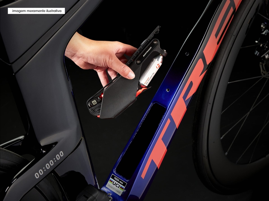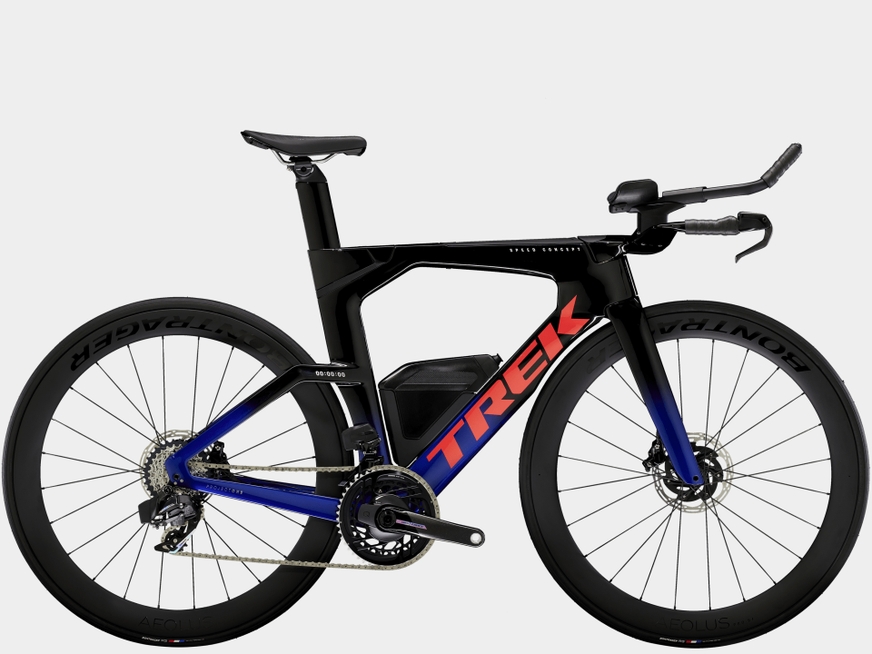 Ela possui quadro de carbono ultraleve OCLV Carbon Série 800, tubo com formato redutor de arrasto Kammtail Virtual Foil (KVF), garfo Speed Concept tipo aerofólio totalmente em carbono, amortecedor de vibrações IsoSpeed e compartimentos integrados para armazenar barras de cereais, hidratação e kits de reparos de pneus. Conta com sistema de transmissão eletrônica sem fio SRAM Force AXS D2 de 12 velocidades com alavancas de câmbio SRAM AXS Clics, um medidor de potência Force AXS e guidão e avanço totalmente integrados. Seu selim específico para triathlon Bontrager Hilo Comp confere uma postura agressiva e aerodinâmica, além de freios a disco para um poder de frenagem confiável e rodas aerodinâmicas Bontrager Aeolus Pro 51 de OCLV Carbon.
