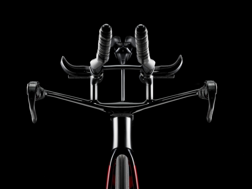 Ela possui quadro de carbono ultraleve OCLV Carbon Série 800, tubo com formato redutor de arrasto Kammtail Virtual Foil (KVF), garfo Speed Concept tipo aerofólio totalmente em carbono, amortecedor de vibrações IsoSpeed e compartimentos integrados para armazenar barras de cereais, hidratação e kits de reparos de pneus. Conta com sistema de transmissão eletrônica sem fio SRAM Force AXS D2 de 12 velocidades com alavancas de câmbio SRAM AXS Clics, um medidor de potência Force AXS e guidão e avanço totalmente integrados. Seu selim específico para triathlon Bontrager Hilo Comp confere uma postura agressiva e aerodinâmica, além de freios a disco para um poder de frenagem confiável e rodas aerodinâmicas Bontrager Aeolus Pro 51 de OCLV Carbon.