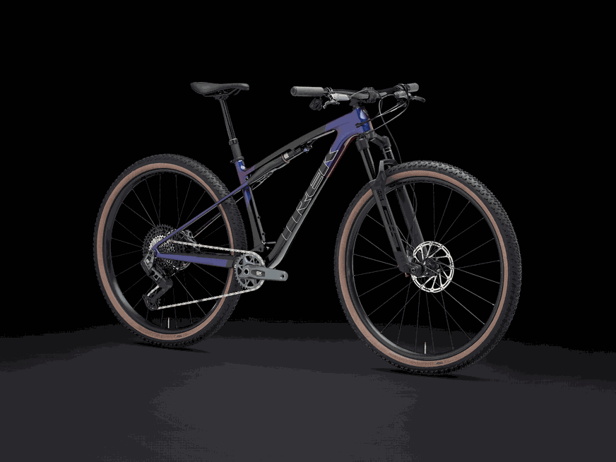 Um quadro em carbono OCLV para mountain bikes SL leve, de alta resistência e rigidez com geometria moderna para o cross country. Suspensão dianteira de 110 mm usando um garfo RockShox SID com mola DebonAir e suspensão traseira com IsoStrut de 80 mm com amortecedor RockShox SIDLuxe — tudo com bloqueio remoto. Uma transmissão eletrônica SRAM GX AXS totalmente sem fio de 12 velocidades, rodas Bontrager Kovee Comp 25, combinação de guidão/avanço integrados Bontrager RSL em carbono, canote retrátil Bontrager Line e freios a disco hidráulicos de 4 pistões SRAM Level Bronze.