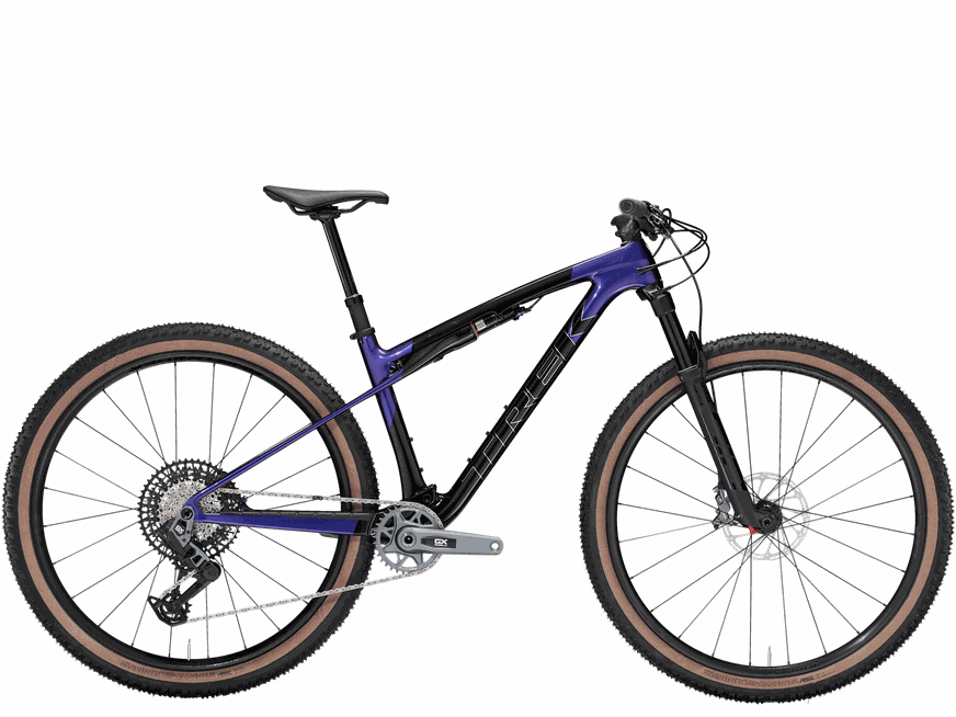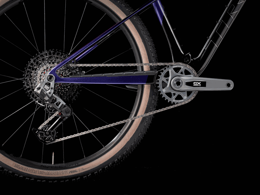 Um quadro em carbono OCLV para mountain bikes SL leve, de alta resistência e rigidez com geometria moderna para o cross country. Suspensão dianteira de 110 mm usando um garfo RockShox SID com mola DebonAir e suspensão traseira com IsoStrut de 80 mm com amortecedor RockShox SIDLuxe — tudo com bloqueio remoto. Uma transmissão eletrônica SRAM GX AXS totalmente sem fio de 12 velocidades, rodas Bontrager Kovee Comp 25, combinação de guidão/avanço integrados Bontrager RSL em carbono, canote retrátil Bontrager Line e freios a disco hidráulicos de 4 pistões SRAM Level Bronze.