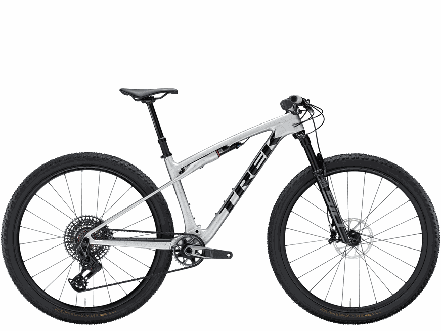 Um quadro SLR OCLV Mountain Carbon ultraleve e com módulo alto, com geometria moderna para o cross-country (XC). Suspensão dianteira de 110 mm usando um garfo RockShox SID Select+ com mola DebonAir e amortecimento Charger Race Day, e suspensão traseira IsoStrut de 80 mm com amortecedor traseiro RockShox SIDLuxe — tudo com bloqueio remoto. Uma transmissão eletrônica e sem fio SRAM X0 AXS de 12 velocidades, rodas de fibra de carbono Bontrager Kovee Elite 30, combo guidão/avanço Bontrager RSL integrado, canote retrátil Bontrager Line e freios a disco hidráulicos de 4 pistões SRAM Level Bronze.