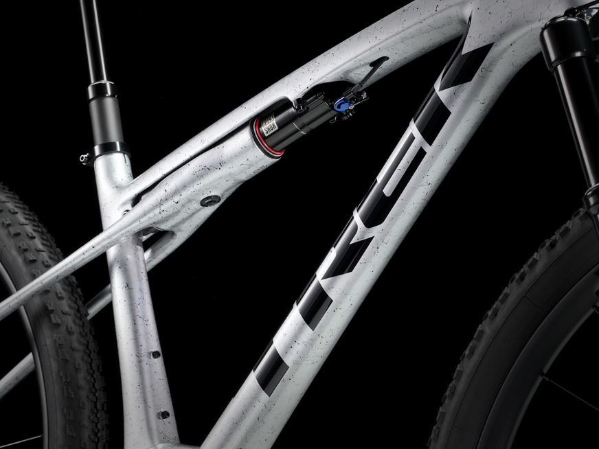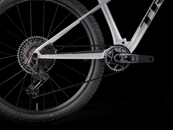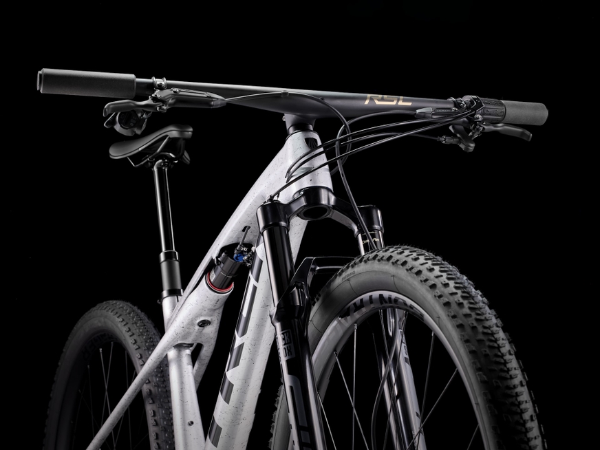 Um quadro SLR OCLV Mountain Carbon ultraleve e com módulo alto, com geometria moderna para o cross-country (XC). Suspensão dianteira de 110 mm usando um garfo RockShox SID Select+ com mola DebonAir e amortecimento Charger Race Day, e suspensão traseira IsoStrut de 80 mm com amortecedor traseiro RockShox SIDLuxe — tudo com bloqueio remoto. Uma transmissão eletrônica e sem fio SRAM X0 AXS de 12 velocidades, rodas de fibra de carbono Bontrager Kovee Elite 30, combo guidão/avanço Bontrager RSL integrado, canote retrátil Bontrager Line e freios a disco hidráulicos de 4 pistões SRAM Level Bronze.